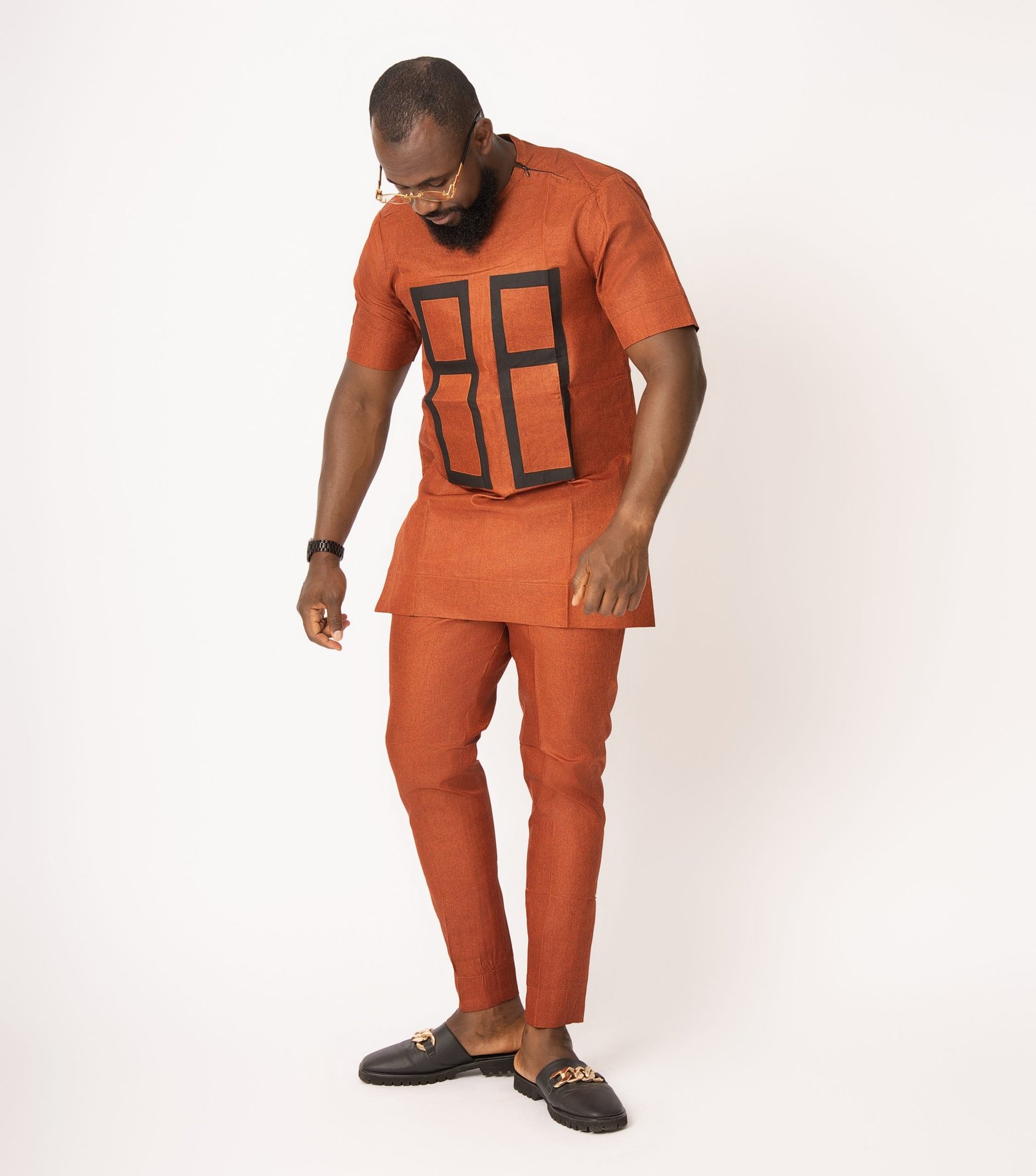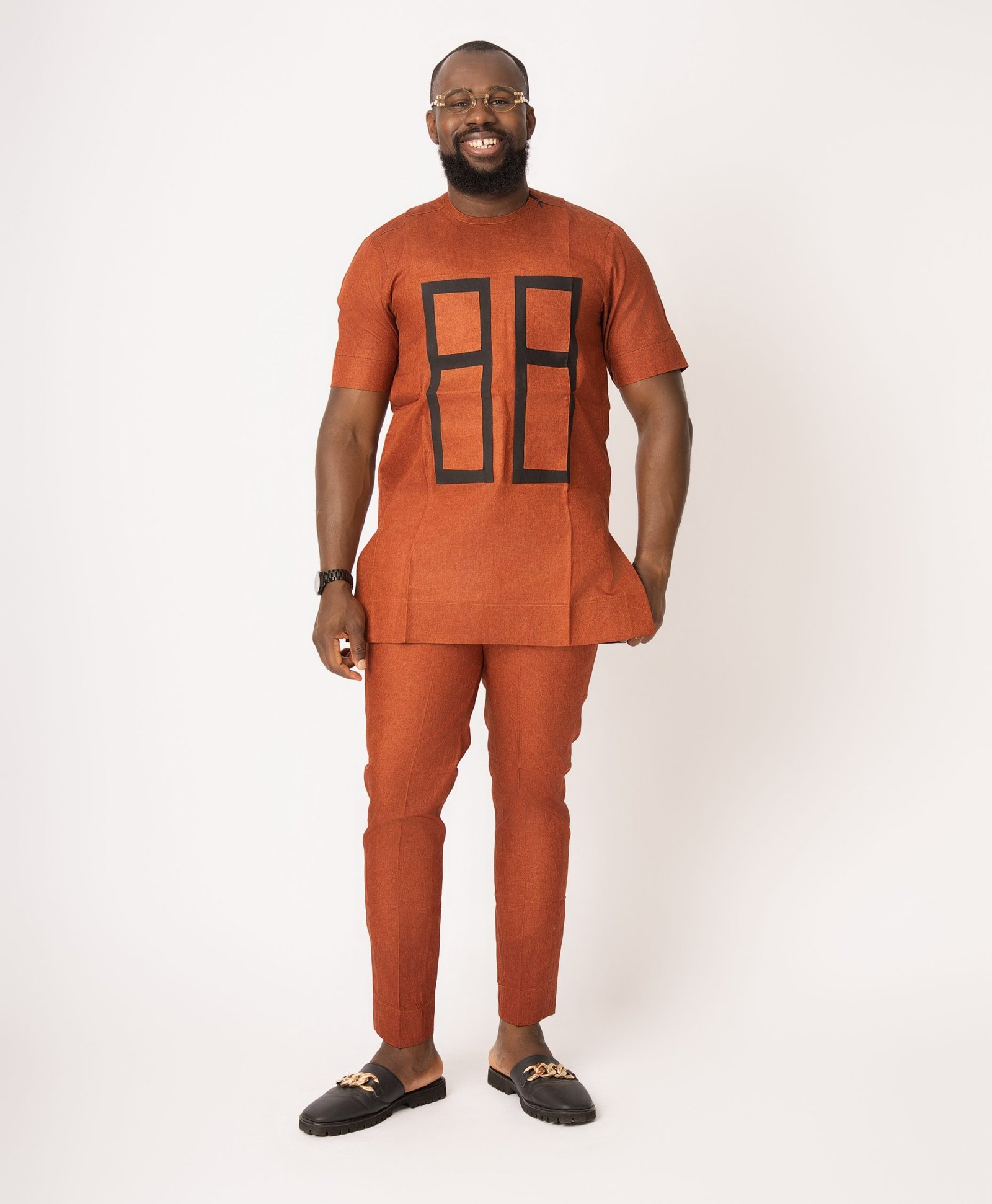 Make a bold and energetic statement with our Afrowear Sunset Orange Smart Set. This men’s ensemble features a vibrant orange African-inspired design, tailored for a sharp, modern fit that’s perfect for celebrations, high-energy social events, or formal gatherings. Offering a unique blend of vibrant color and sophisticated style, this set is designed for the modern man who values culture and elegance. Experience high-quality craftsmanship for a standout appearance.