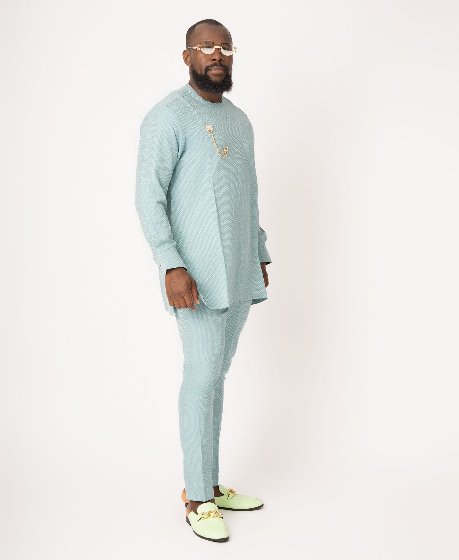Experience the serenity of our Afrowear Skyblue Smart Set. This men’s ensemble features a refreshing sky blue tone and precise African-inspired tailoring, offering a modern and sophisticated look for any formal or social gathering. With a sharp fit and traditional aesthetic, this set is designed for the modern man who values cultural pride and elegance. Experience high-quality craftsmanship for a truly distinguished appearance.