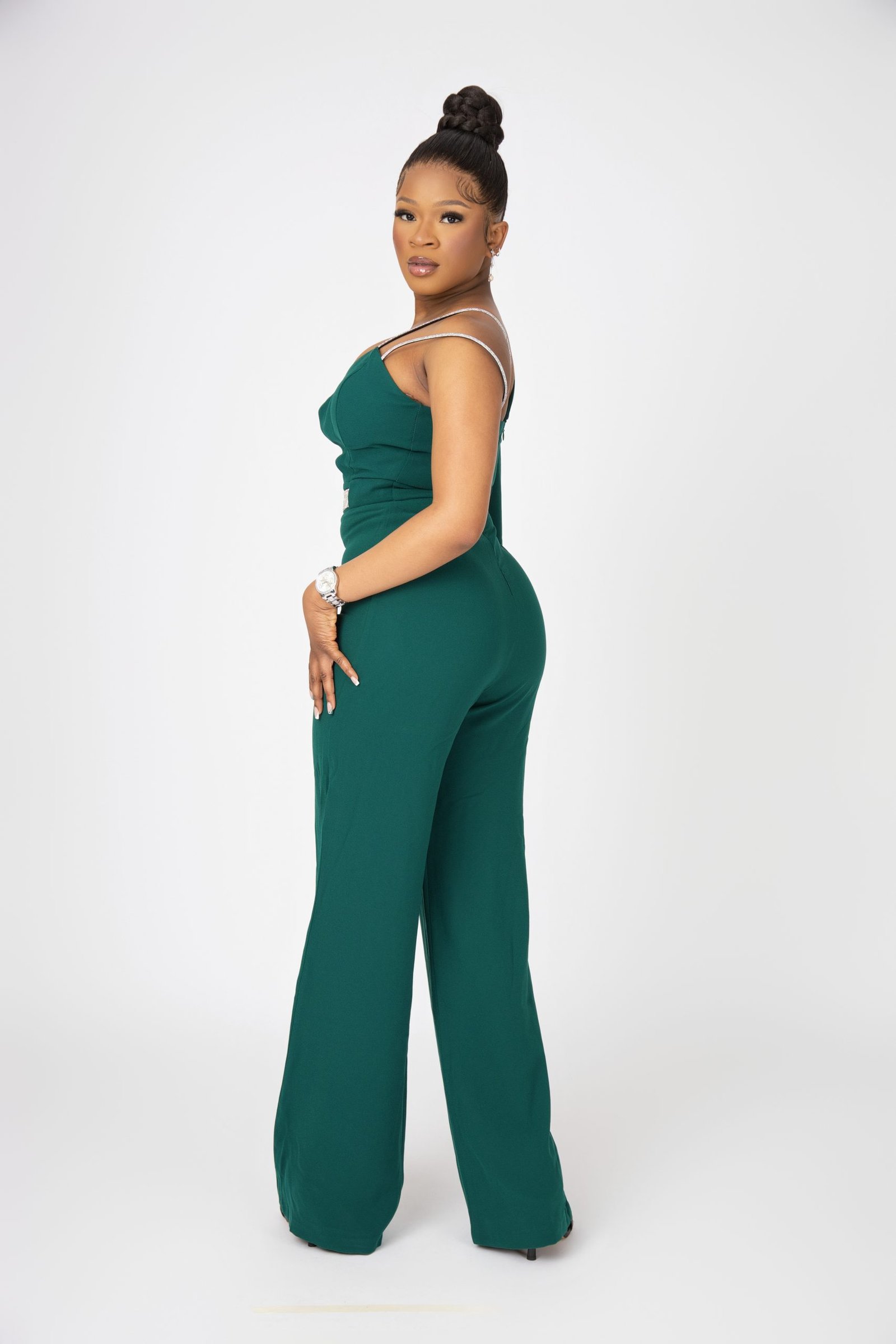 Bling Strap Jumpsuit – Emerald Green Embellished Evening Wear