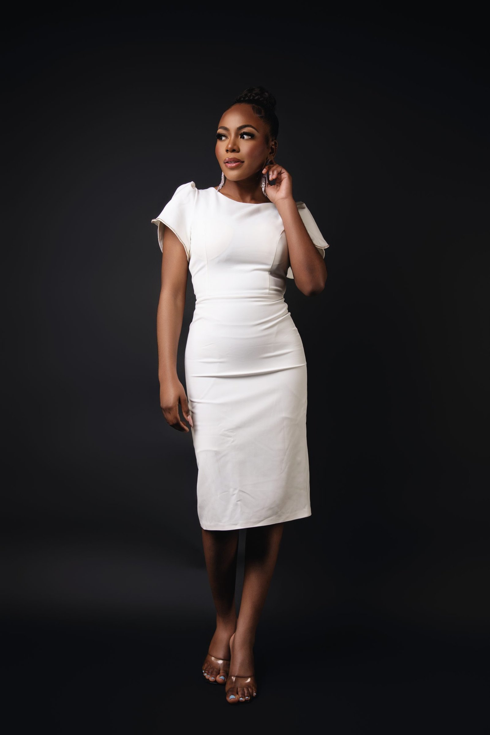 Claire Puffy Arm Dress – Pristine White Romantic Evening Wear