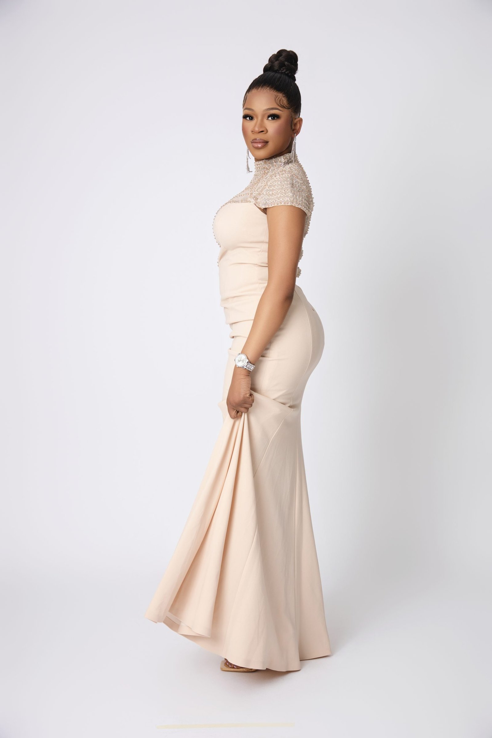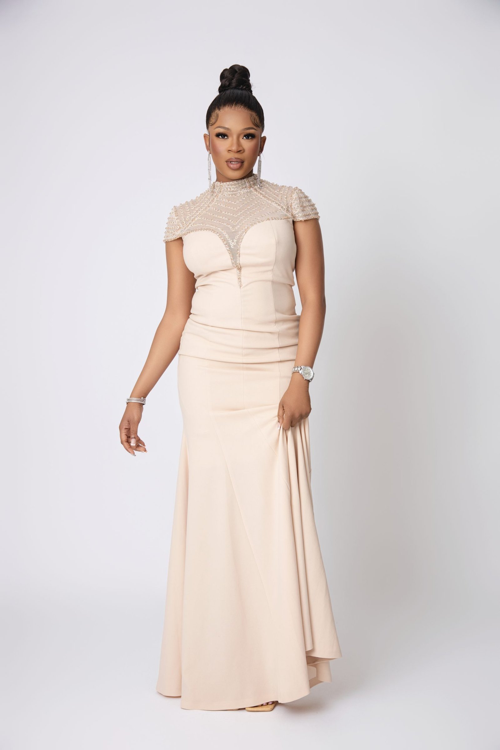 Creme de la Creme Dress – Elegant Beige Sophisticated Midi
