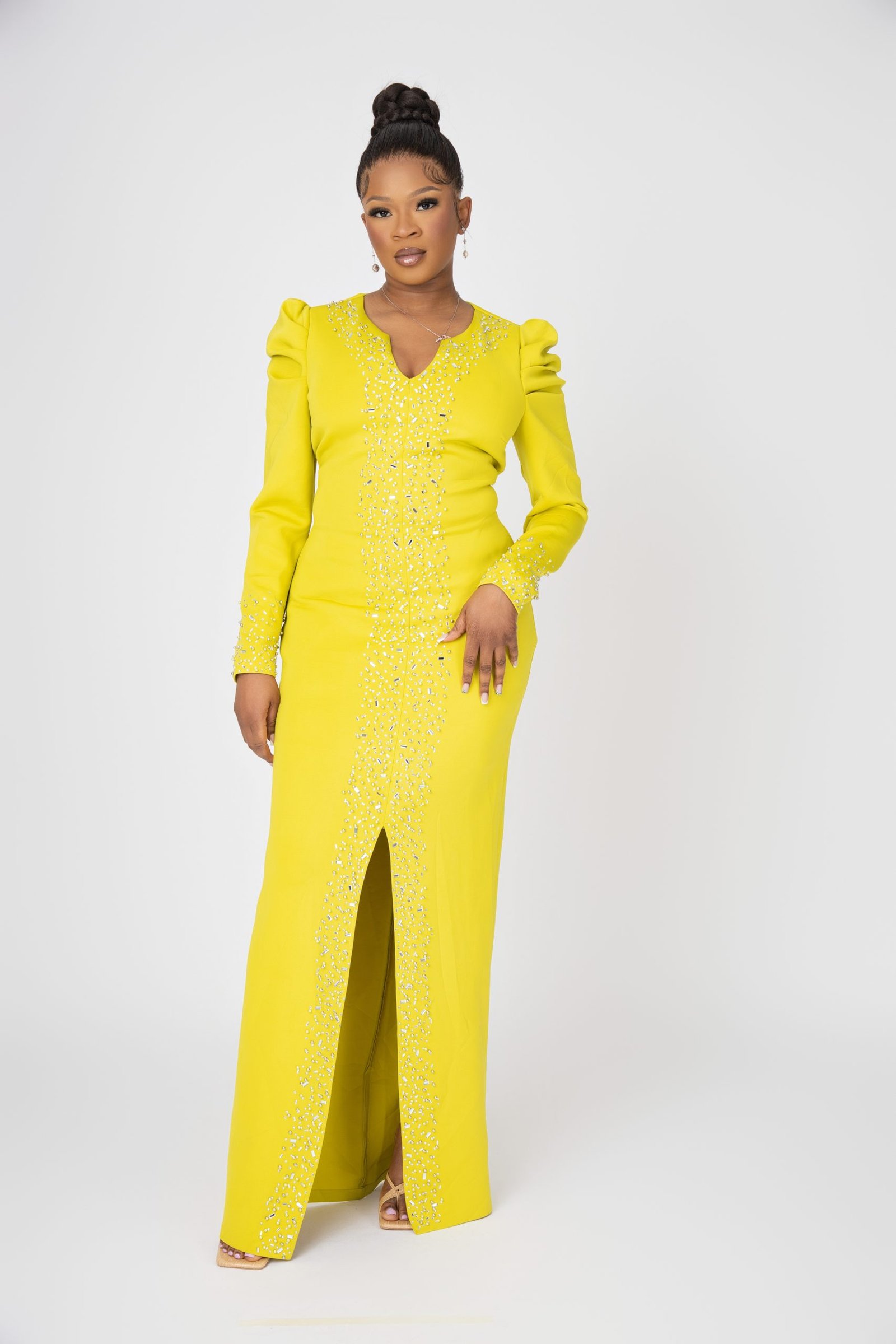 Illuminate your next event with the Lady Rhinestone Dress in a refreshing lime green. This striking midi dress is meticulously detailed with sparkling rhinestones that create a high-fashion, radiant look. Featuring a sleek silhouette and a bold color palette, it’s the perfect choice for summer galas, parties, or any occasion where you want to make a memorable entrance. Crafted from premium fabric for a luxurious feel and a flattering fit.