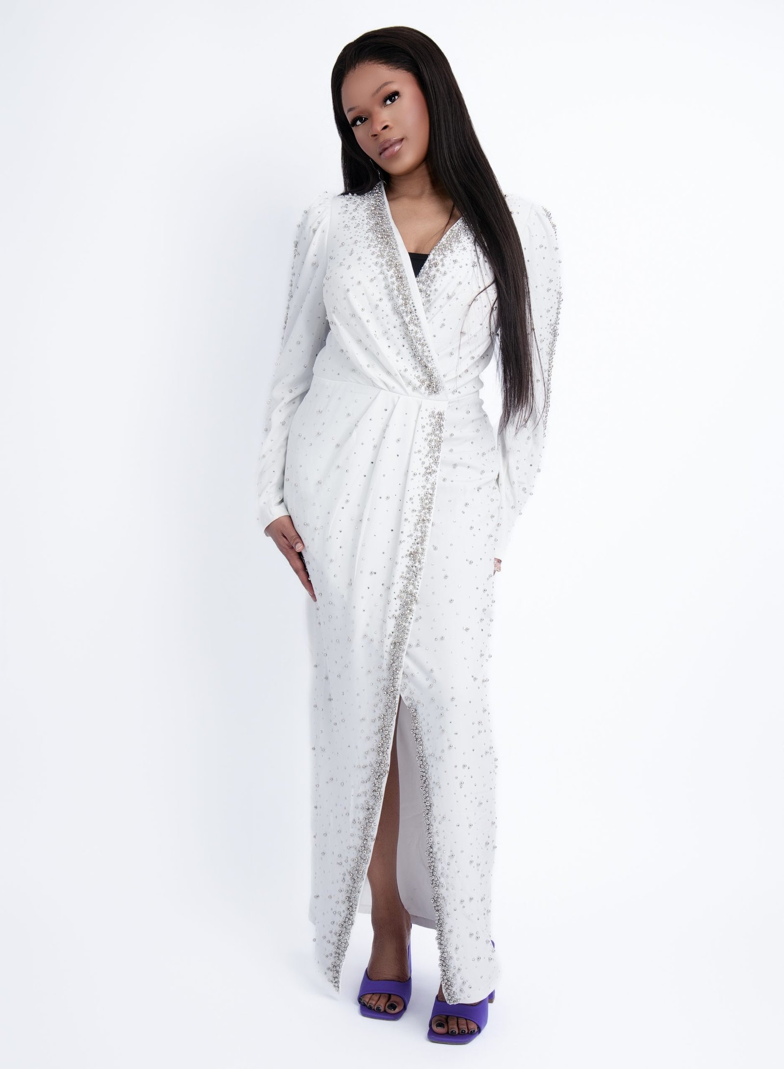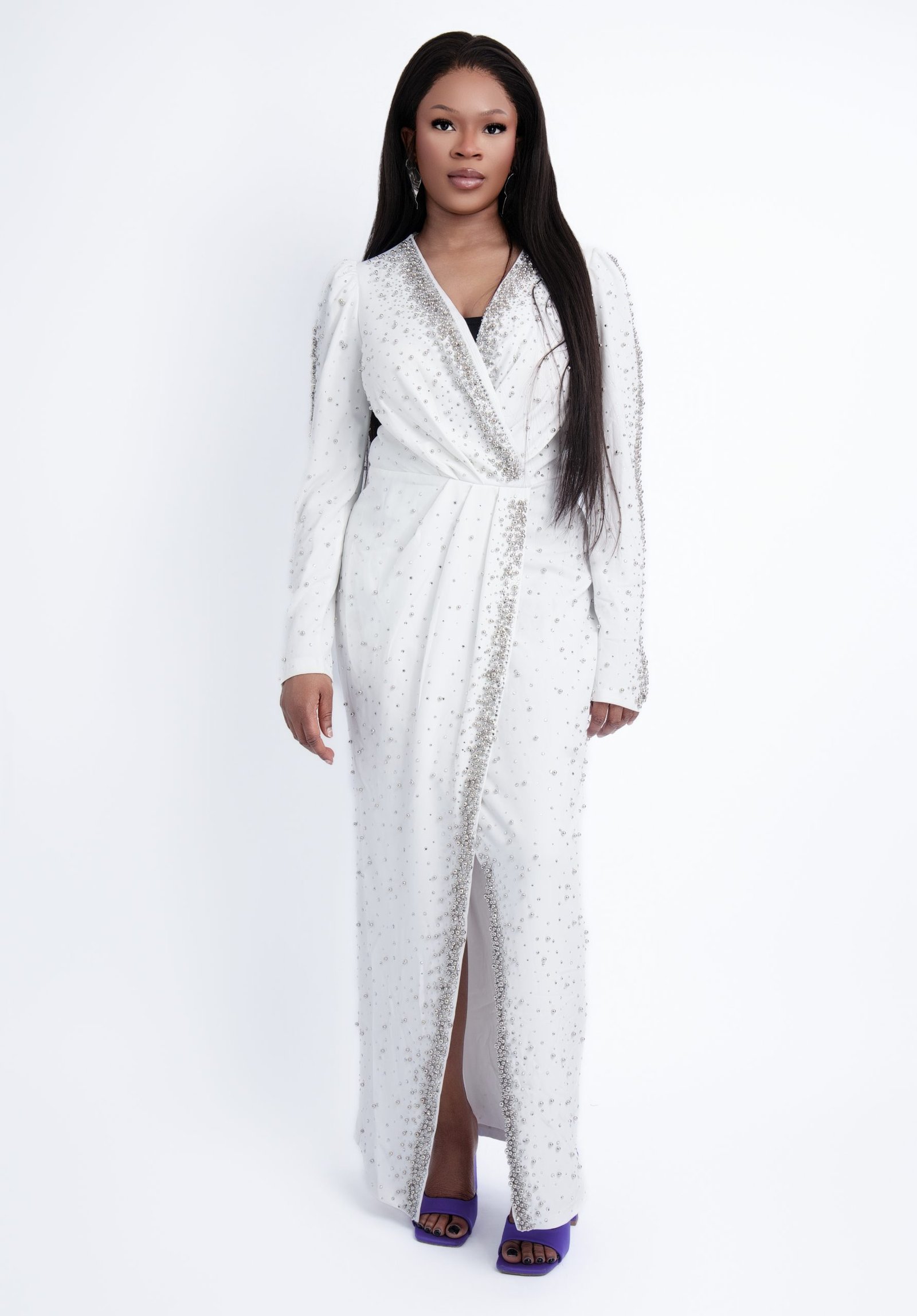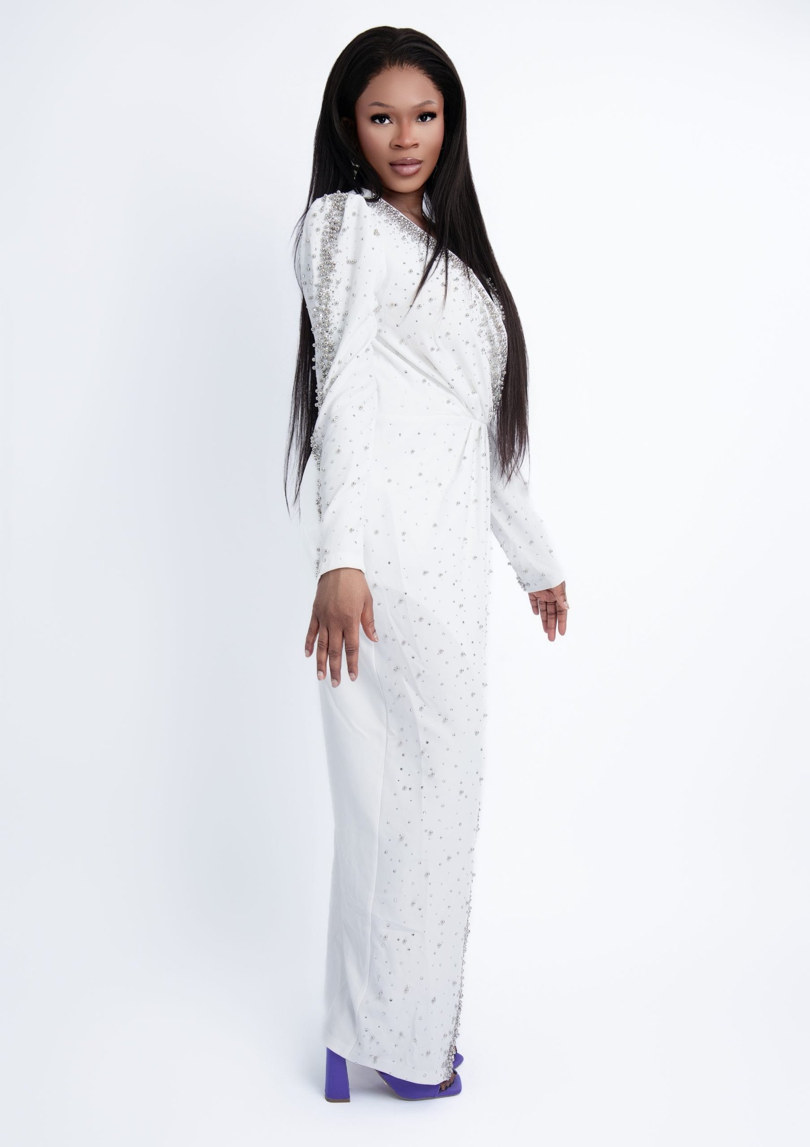 Pearly Ethereal White Gown – Pristine Pearl Detailed Formal Dress for Weddings & Galas