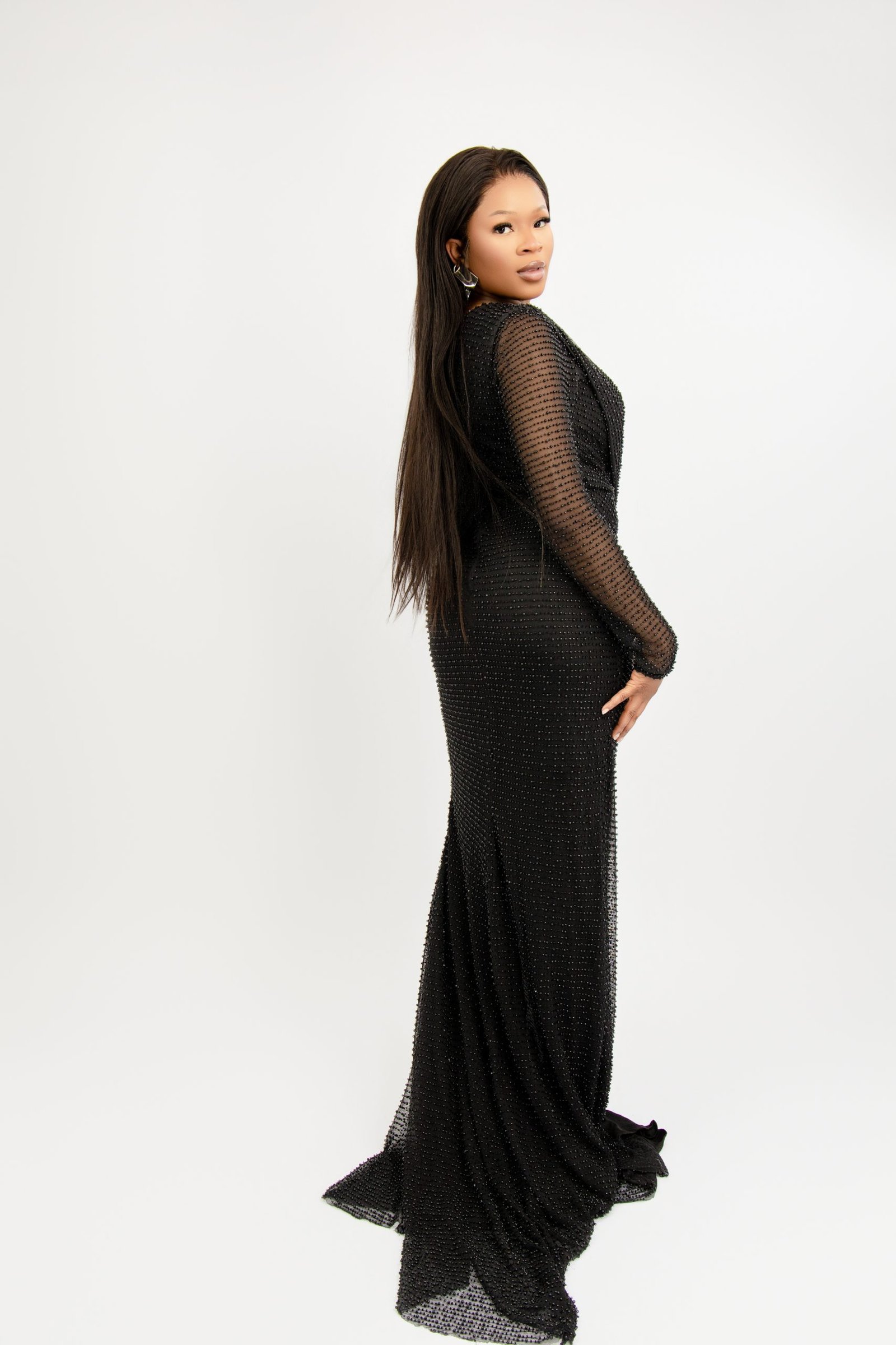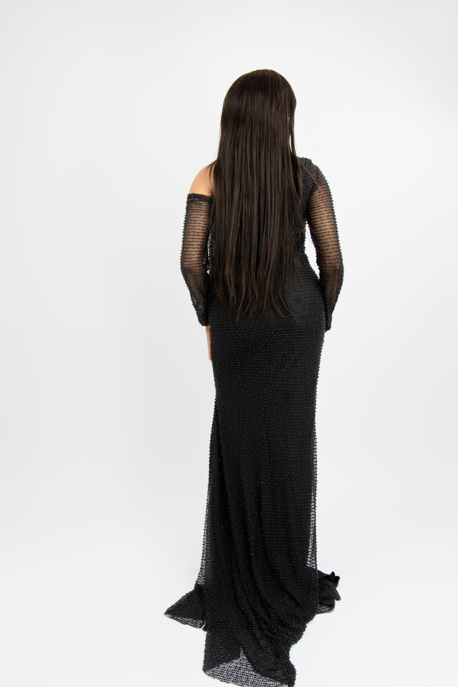 Sopearl Midnight Black Evening Dress – Glamorous Pearl Accented Formal Gown for Galas & Social Events